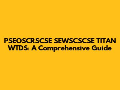 PSEOSCRSCSE SEWSCSCSE TITAN WTDS: A Comprehensive Guide