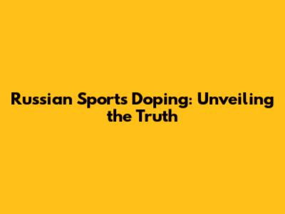 Russian Sports Doping: Unveiling The Truth