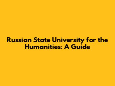 Russian State University For The Humanities: A Guide