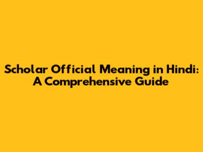 Scholar Official Meaning In Hindi: A Comprehensive Guide