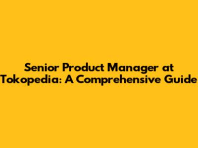 Senior Product Manager At Tokopedia: A Comprehensive Guide