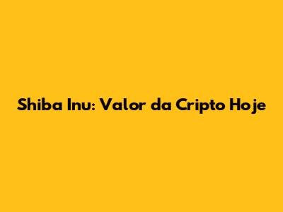 Shiba Inu: Valor Da Cripto Hoje