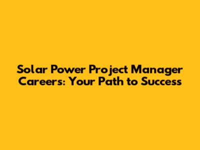 Solar Power Project Manager Careers: Your Path To Success