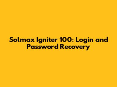 Solmax Igniter 100: Login And Password Recovery