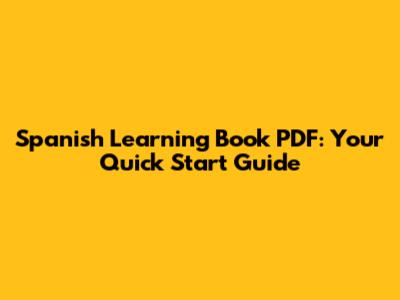 Spanish Learning Book PDF: Your Quick Start Guide
