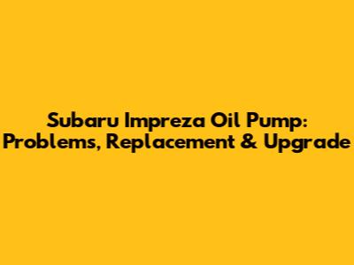 Subaru Impreza Oil Pump: Problems, Replacement & Upgrade