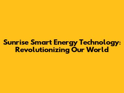 Sunrise Smart Energy: Revolutionizing Our World