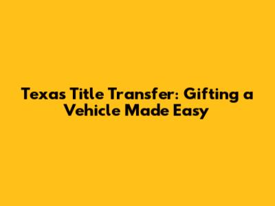 Hey there, car lovers and gift-givers! Ever wondered about the ins and outs of a title transfer in Texas when you're gifting a vehicle? It might seem a bit daunting, but trust me, it's totally manageable. Whether you're passing down a trusty old pickup truck to a family member or surprising a friend with a sweet ride, understanding the process is key. This guide breaks down everything you need to know about navigating a Texas title transfer for a gift, ensuring a smooth and hassle-free experience. We'll cover all the essential steps, required documents, potential fees, and even some helpful tips to make the process a breeze. So, grab a coffee, sit back, and let's dive into the world of Texas vehicle title transfers for gifts!