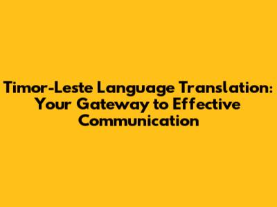 Timor-Leste Language Translation: Your Guide To Communication