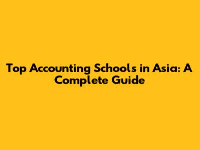Top Accounting Schools In Asia: A Complete Guide