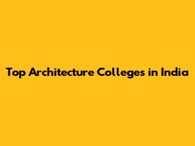 Top Architecture Colleges In India