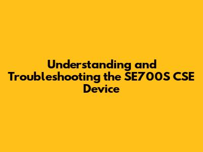 Understanding And Troubleshooting The SE700S CSE Device