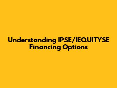 Understanding IPSE/IEQUITYSE Financing Options