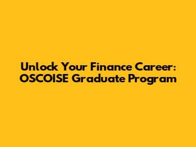 Unlock Your Finance Career: OSCOISE Graduate Program