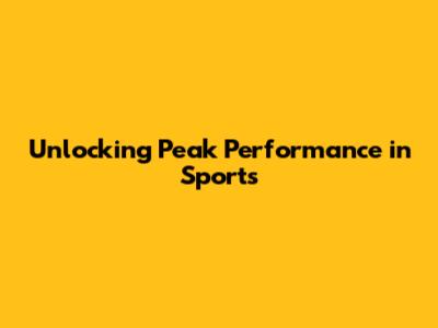 Unlocking Peak Performance In Sports