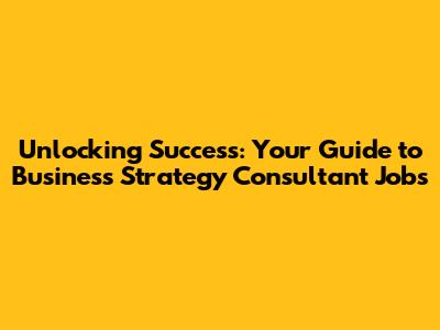 Unlocking Success: Your Guide To Business Strategy Consultant Jobs
