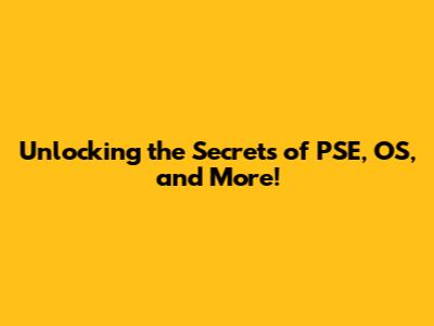 Unlocking The Secrets Of PSE, OS, And More!