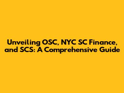 Unveiling OSC, NYC SC Finance, And SCS: A Comprehensive Guide