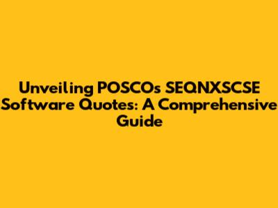 Unveiling POSCO's SEQNXSCSE Software Quotes: A Comprehensive Guide