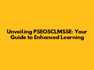 Unveiling PSEOSCLMSSE: Your Guide To Enhanced Learning