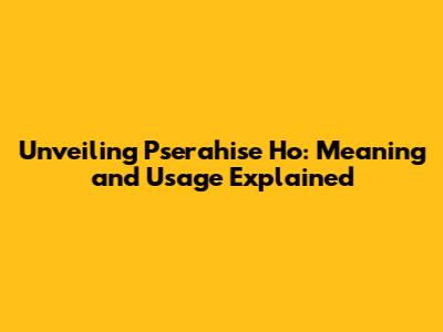 Unveiling 'Pserahise Ho': Meaning And Usage Explained