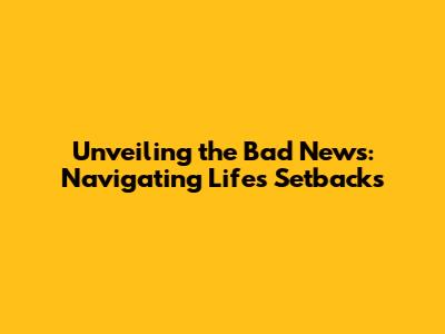 Unveiling The Bad News: Navigating Life's Setbacks