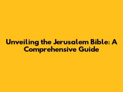 Unveiling The Jerusalem Bible: A Comprehensive Guide