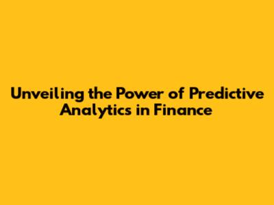 Unveiling The Power Of Predictive Analytics In Finance