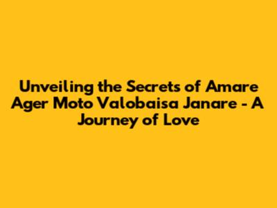 Unveiling The Secrets Of 'Amare Ager Moto Valobaisa Janare' - A Journey Of Love