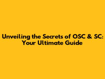 Unveiling The Secrets Of OSC & SC: Your Ultimate Guide