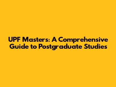 UPF Masters: A Comprehensive Guide to Postgraduate Studies