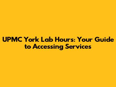 UPMC York Lab Hours: Your Guide To Accessing Services