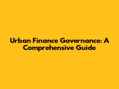 Urban Finance Governance: A Comprehensive Guide